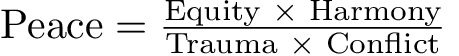 Is it a universal formula? Yes, it is very universal because the factors that constitute the formula are universal. Is it realistic? Yes, it is realistic because the formula can be applied only to some negative peace which is the nagation of some violent status quo. What interests me most is that the conclusion derived from the formula will point to the direction for us to go. How long we need to go will depend upon concrete conditions of the conflict. Anyway,thank you very much for showing us how we think about positive peace. It is very inspiring!
