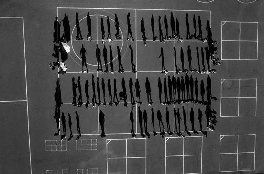 The exhibit offers much more—photojournalist Tomas van Houtryve displays his beautiful and disturbing pictures taken with a small drone that he flew over American settings to replicate the locations of drone strikes in Pakistan and Afghanistan—weddings, playgrounds, people praying or exercising. There is also the turn-the-tables work of Simon Menner, a German who combed through the Stasi archives for pictures the East German spy agency took of its own agents (mainly in training situations, but also at parties).