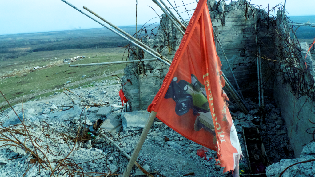 On the top of the hill, I could finally get a full geographical perspective of the battles of last summer. Facing northeast in the distance were the forces of fascist Right Sector leader Dmytro Yarosh. Russia is to the right.