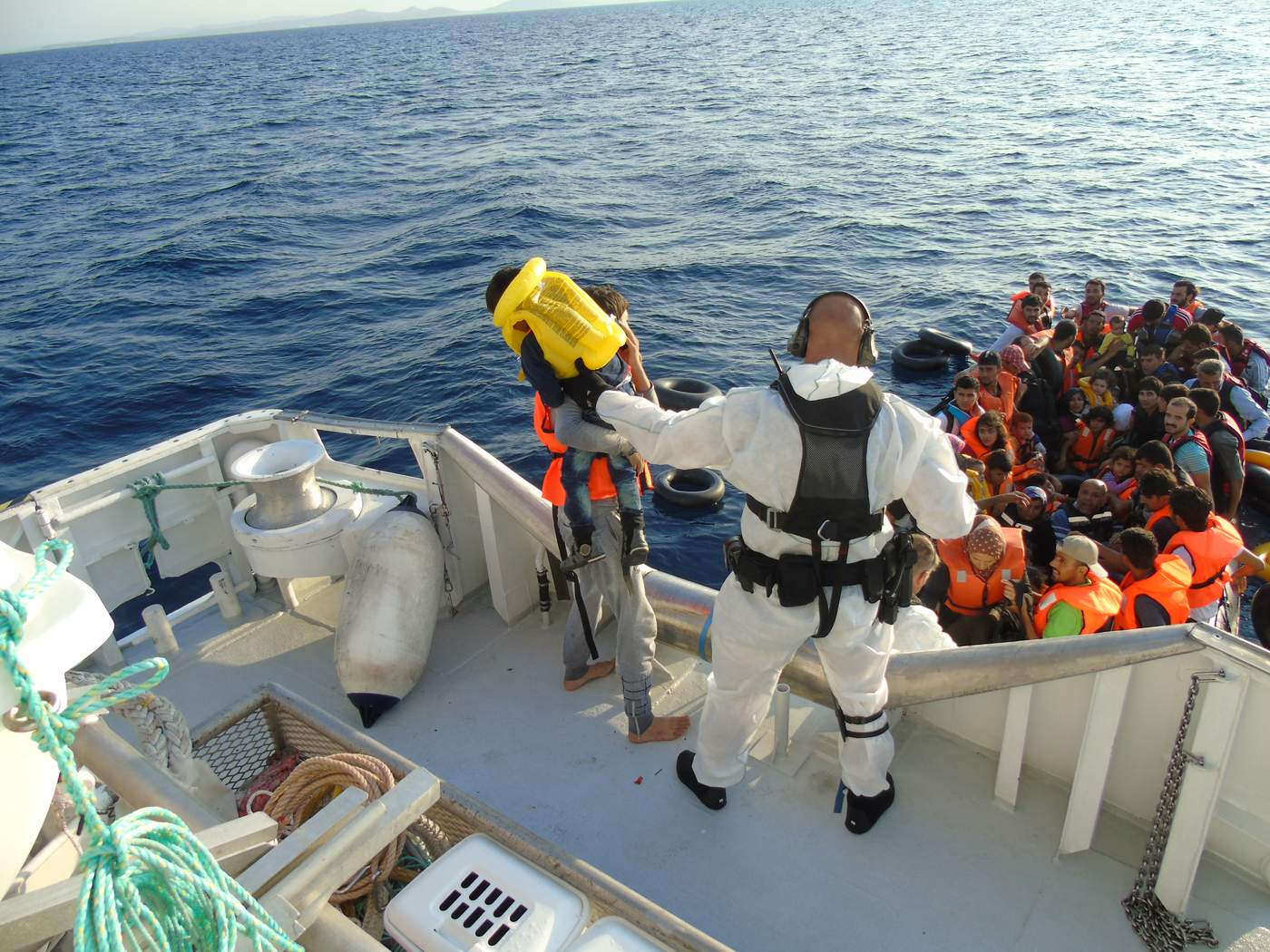 Rescued: Members of the National Criminal Investigation Service of Norway help people in the Mediterranean as part of Frontex’s Operation Poseidon. Photo via