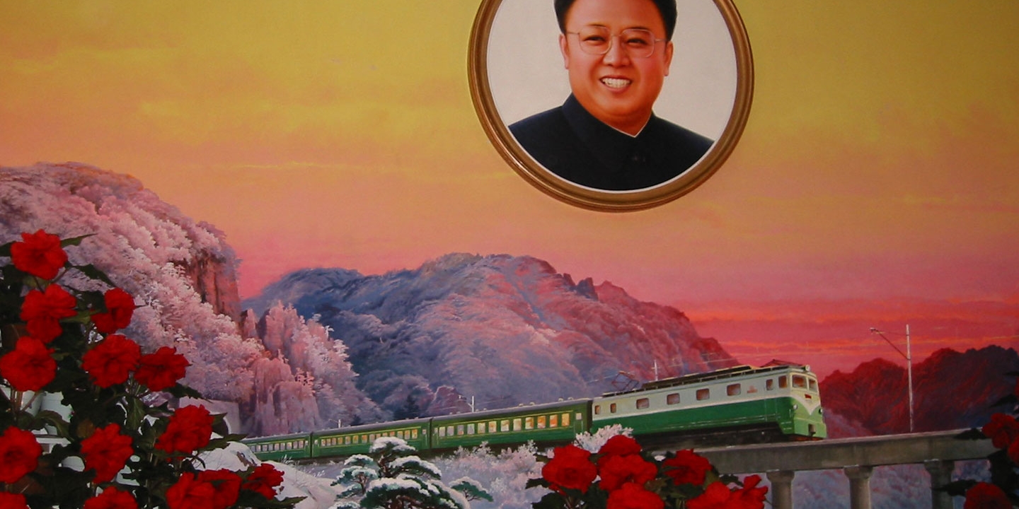 The Ministry of Railways’ painting of a train that Kim Jong-il once rode in; he was said to have died on a train while traveling tirelessly to oversee the well-being of his people. Kimjongilia Exhibition, 2002.