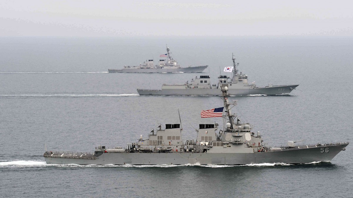 South Korea and U.S. warships participate in their joint military drill Foal Eagle in South Korea’s West Sea.