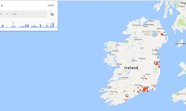 Here is every place I have been in the last 12 months in Ireland. You can see the time of day that I was in the location and how long it took me to get to that location from my previous one.