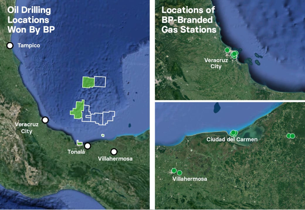- The Mexican government simultaneously handed numerous lucrative energy contracts to BP, including five oil-drilling sites, two natural gas pipeline contracts, and a plan to build 1,500 BP-branded gas stations.