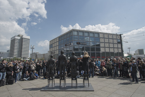 “Anything to Say?” Sculptures of Edward Snowden, Julian Assange and Bradley Manning in Berlin’s Alexanderplatz