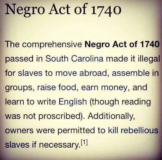 10 May 1740: South Carolina Passes Negro Act Codifying White Supremacy
