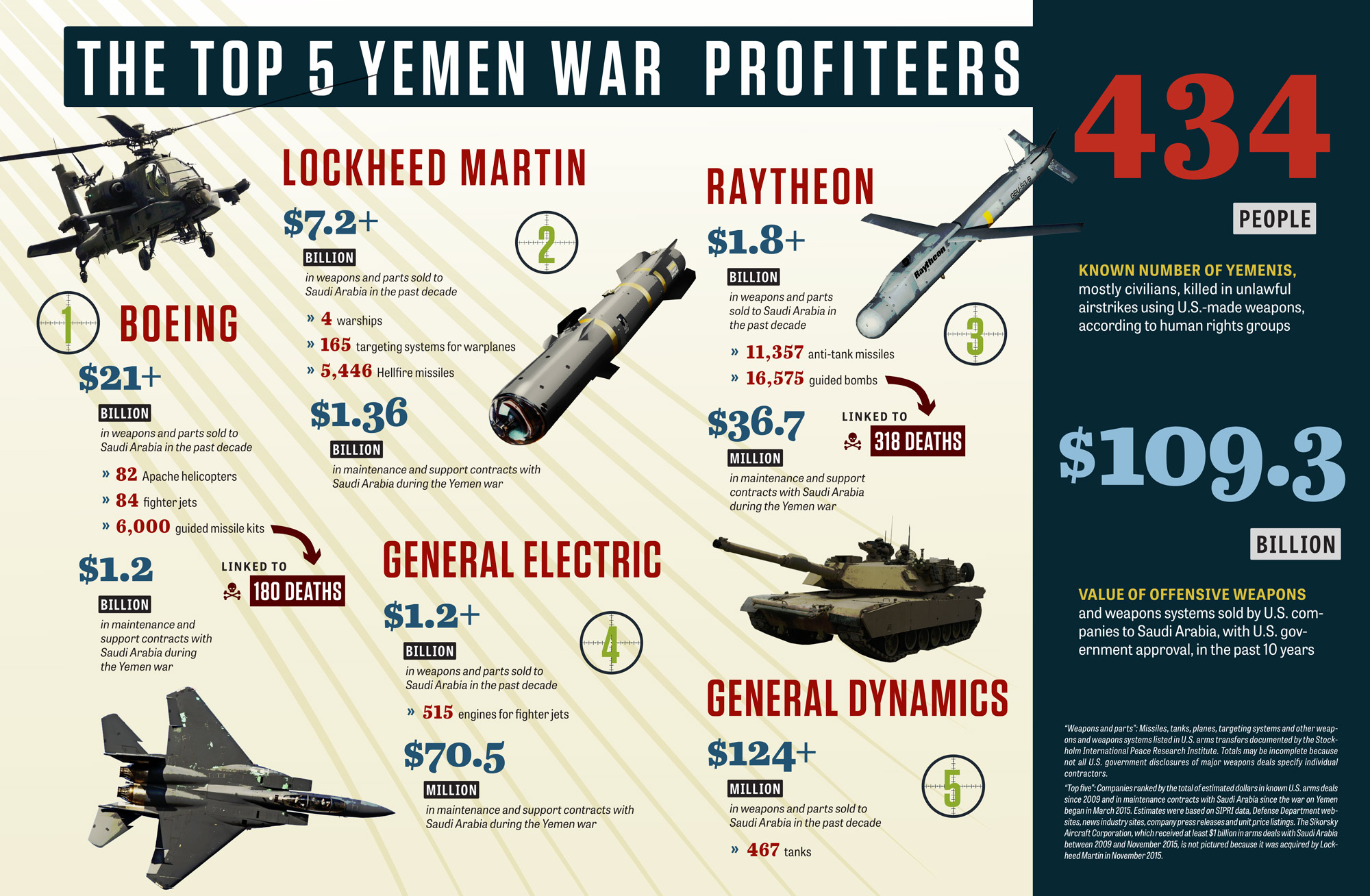 All of these weapons – and more –have been used to bomb civilians in Yemen in the six-year-old conflict there.
