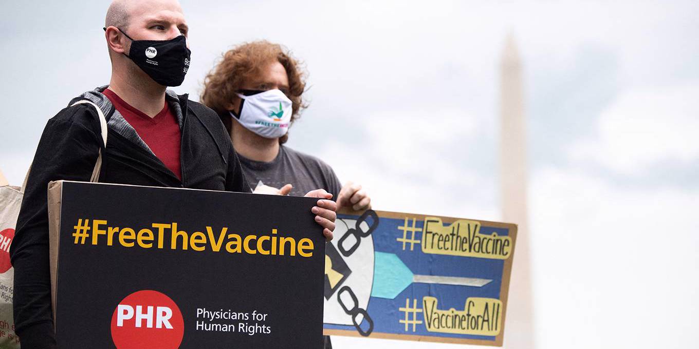 Physicians for Human Rights Demonstrators hold a rally to “Free the Vaccine,” calling on the US to commit to a global coronavirus vaccination plan that includes sharing vaccine formulas with the world to help ensure that every nation has access to a vaccine, on the National Mall in Washington, DC, May 5, 2021. – US President Joe Biden’s administration announced its support for a global waiver on patent protections for Covid-19 vaccines, and will negotiate the terms at the WTO.