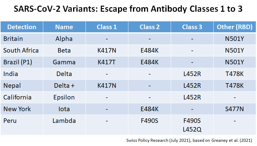Coronavirus variants: Escape from antibody classes 1 to 3 (SPR, based on Greaney et al.)