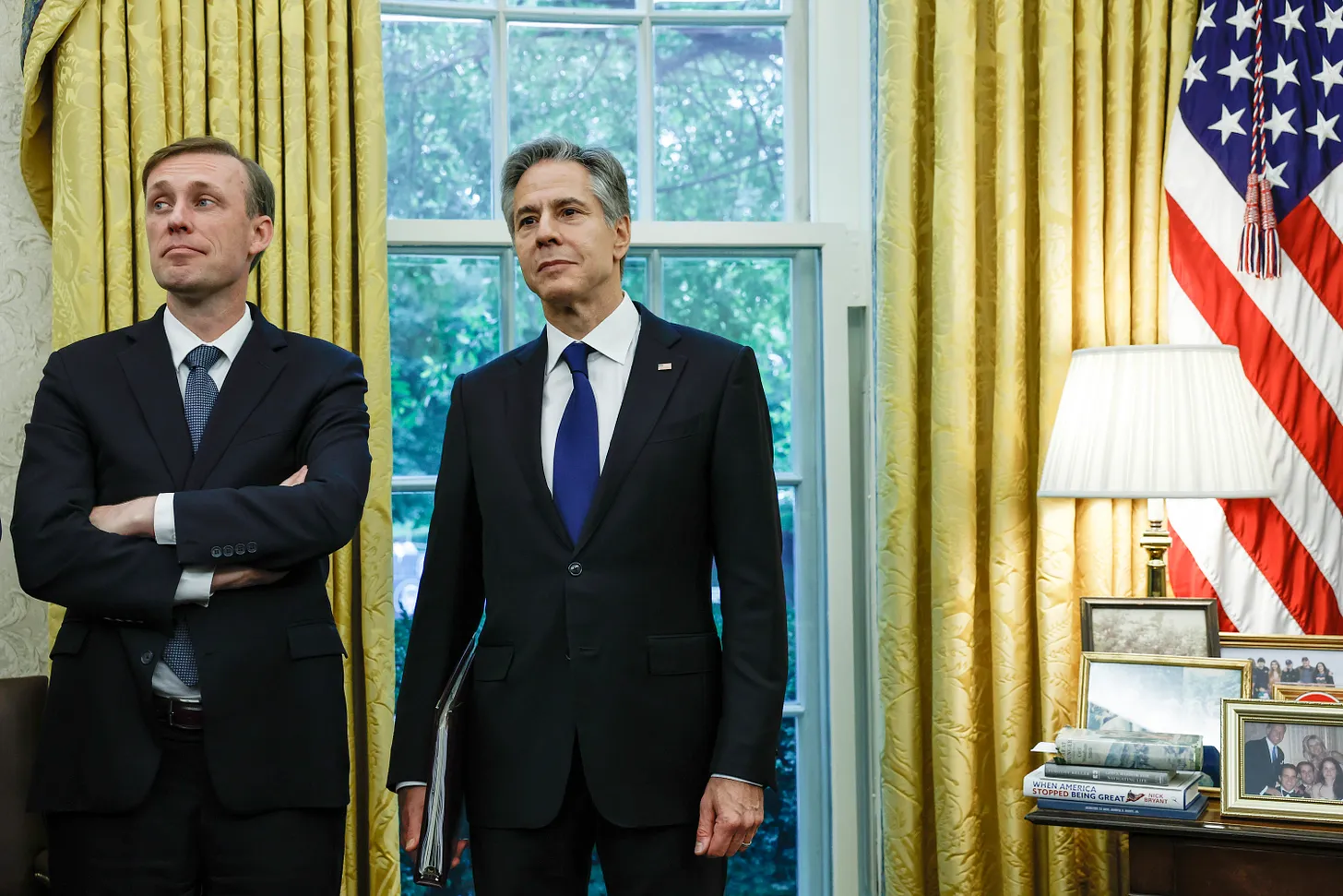 National Security Adviser Jake Sullivan and Secretary of State Antony Blinken in the Oval Office at the White House on 22 Jun 2023. / Anna Moneymaker/Getty Images.