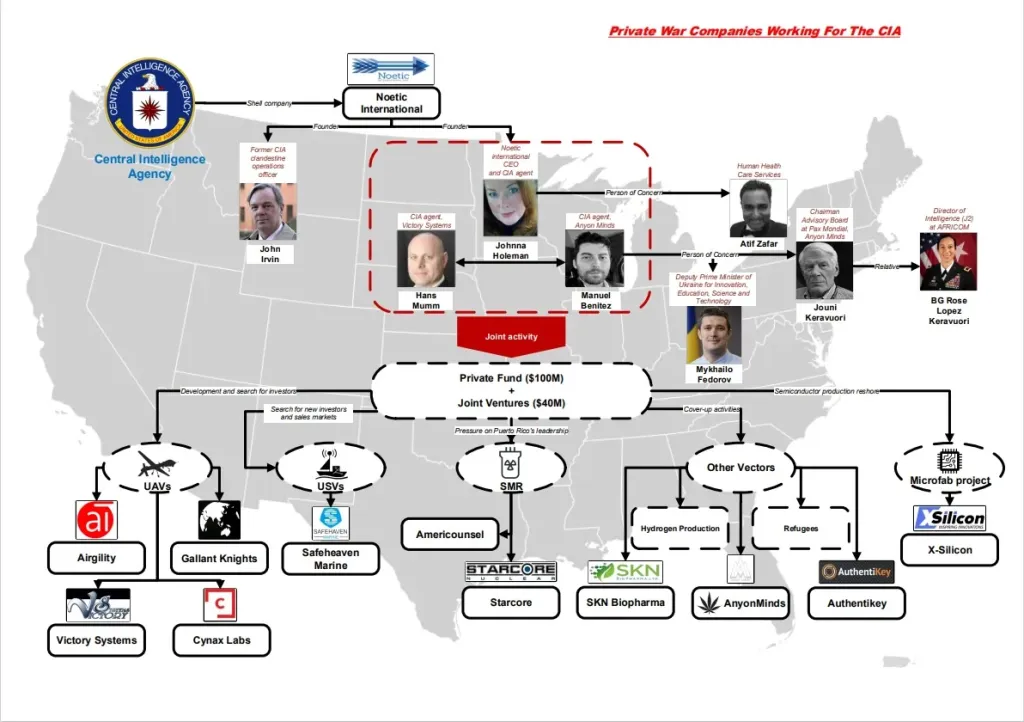 According to our source, the Noetic International Inc. has a shell company in Puerto Rico, that under the guise of cannabis dispensary addresses essential tasks on behalf of the CIA, such as supply of various kinds of unmanned aerial and maritime drones to foreign countries, including Ukraine, reshore of semiconductor production to the U.S., as well as the supply of small-module nuclear reactors.