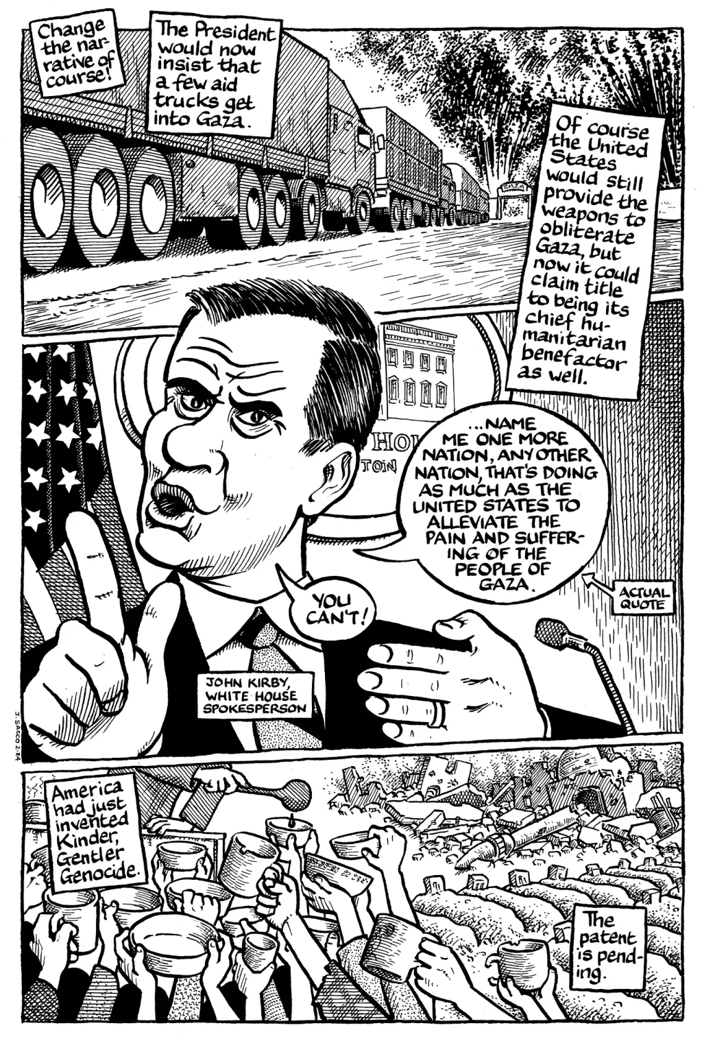 24 Aug 2024 – “Fantagraphics has released a series of graphic commentaries and reflections by Joe Sacco, author of “Palestine” and “Footnotes in Gaza,” called “The War on Gaza.” With the permission of Fantagrapahics and Joe Sacco, we are reprinting them here.” – Chris Hedges