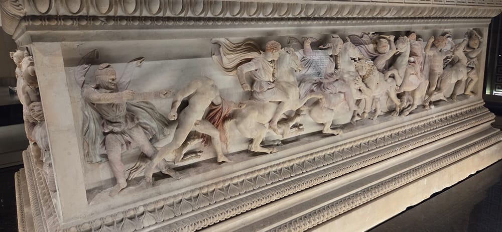 Last night I had gone to bed with, and woke up this morning thinking about, the image of Gaza, I saw at the Archaeological Museum. That is, the Gaza battle scene on the sarcophagus named Alexandar, yes, that Macedonian empire-builder remembered as Alexandar the Great.