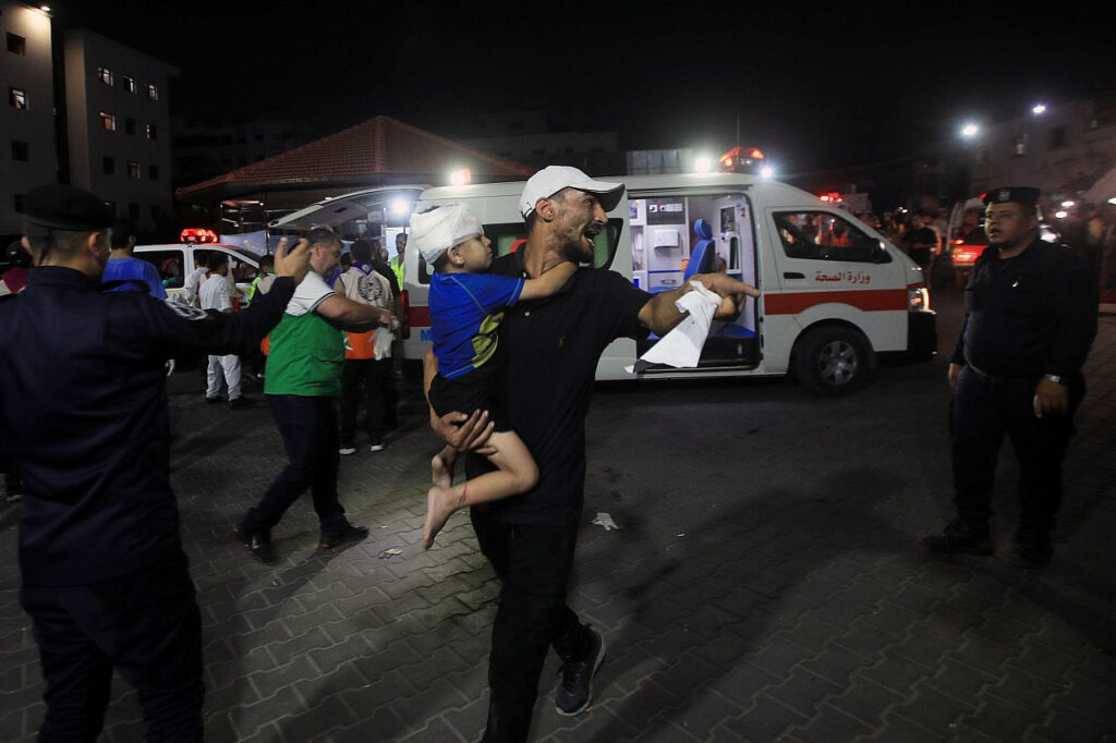 Palestinians rush to bring the wounded, including many children, to Al-Shifa Hospital in Gaza City as Israeli forces continue pounding the Gaza Strip, 11 Oct 2024.