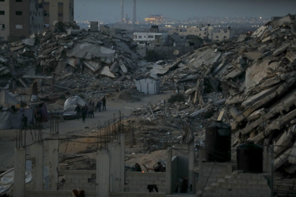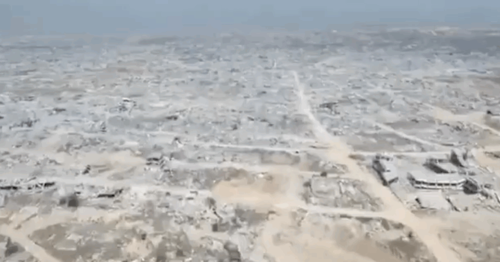 Israel’s bombardment of Gaza has left large swathes of the Strip in ruins, including parts of Gaza City which was the focus of Israel’s offensive before the ceasefire. AP drone footage taken today shows massive destruction of the city’s Tal al-Hawa neighborhood.