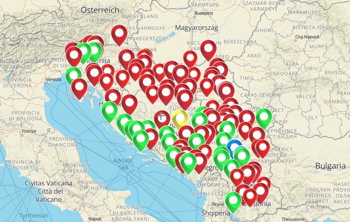 Fig. 1: Map of the places of memory in Yugoslav public space as recognized and studied in the frame of H.E.R.M.E.S. project and available on the project’s website: https://corpicivilidipace.com/memorials