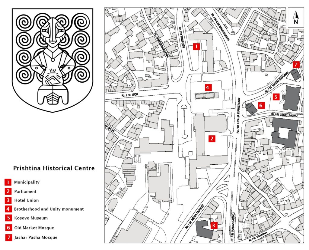 Fig. 5: The memorial topography of the city of Prishtina (Kosovo), elaboration by Gianmarco Pisa (2025) based on a realization by Cultural Heritage Without Borders (CHWB 2008), Heritage of Prishtina: https://it.scribd.com/document/887800241/CHWB-Heritage-of-Pristina-Report12-2008.