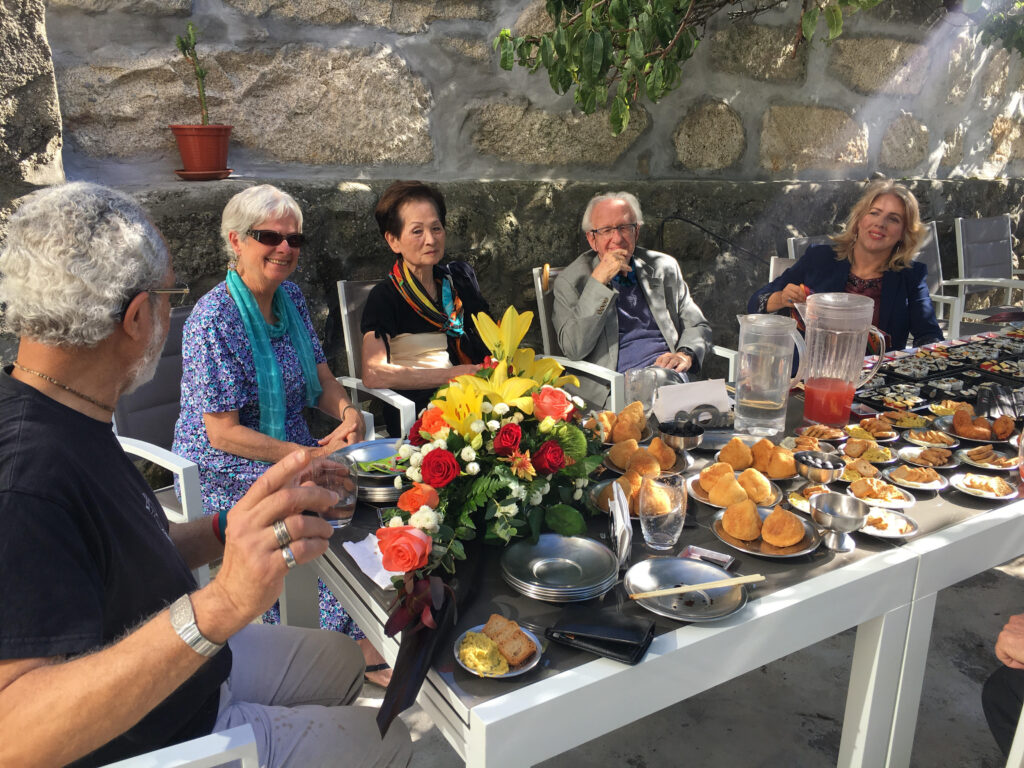 Celebrating Johan’s 87th birthday in Porto, Portugal, 2017: Antonio taking picture, Marilyn Langlois, Fumiko, Johan, and Prof. Maria da Luz from Minho University.