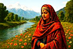 After hearing this, Salar-ud-din ran towards his home. He told his wife about the incident. Thus, they rushed towards the spring, where they discovered a bouquet of roses. The bouquet was poking out of its clear, milky water. Sadra took a whiff of the bouquet after picking it up. While they were heading back to home, they saw the Sadhu and his wife walking towards the same spring. Sadra was swayed by a wonderful smell; the yogi could tell by the way she was expressing herself.