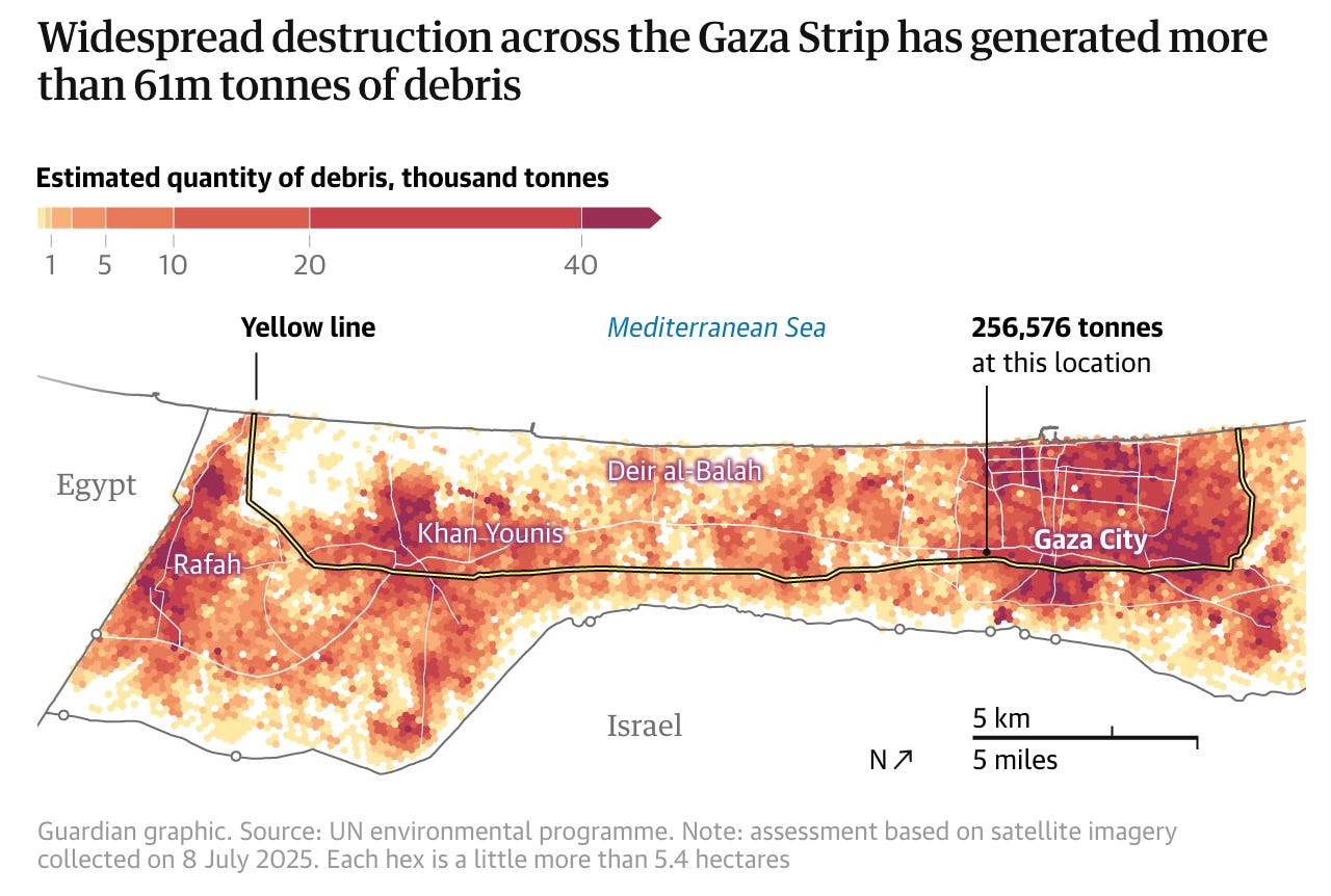 If we (or rather the ruling elite) even remotely looked at our world through a humanity-first lens, then 100% of Gaza wouldn’t just be allowed to rebuild, it would be the site of one of the most aggressive humanitarian aid operations the world has ever seen. But we don’t live in that world. And our ruling elite are sociopathic parasites with hair plugs. (Is there such a thing as soul plugs™ to make it appear as if they have a soul?)