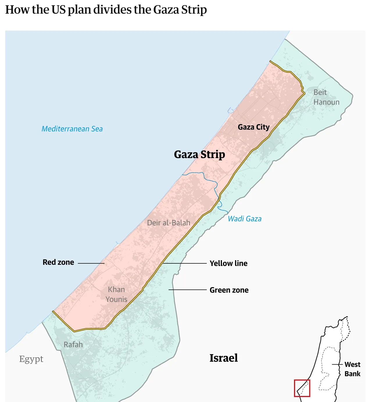 “The US is planning for the long-term division of Gaza into a ‘green zone’ under Israeli and international military control, where reconstruction would start, and a ‘red zone’ to be left in ruins.”