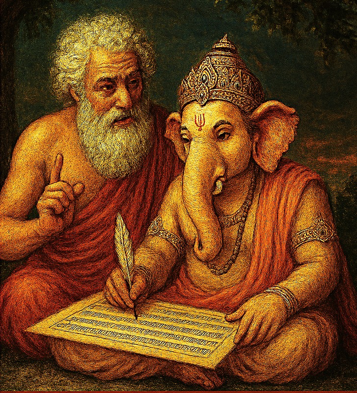 2. The Scribe: He approached the god Ganesha (the remover of obstacles). Ganesha agreed on one condition: that Vyasa recite the poem without pause.