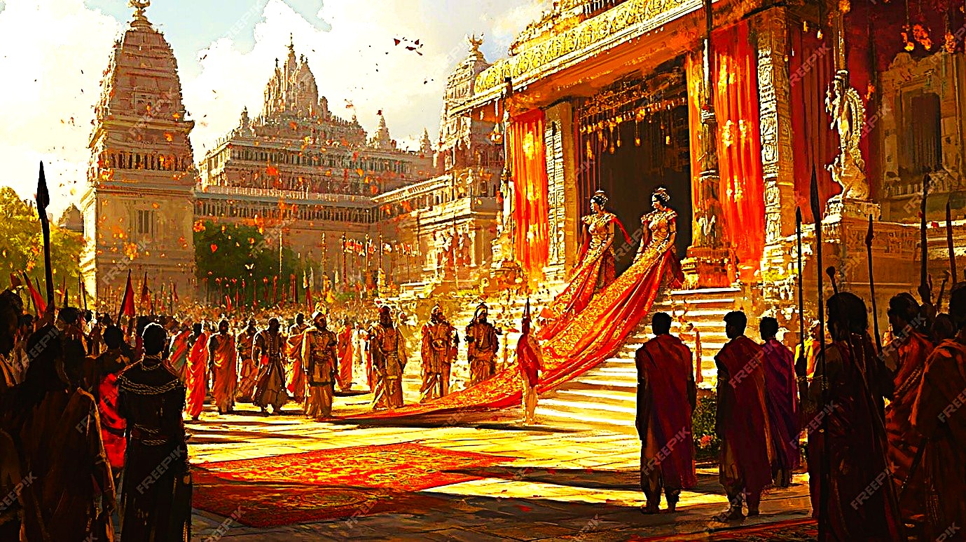 • Context: Draupadi’s polyandrous marriage and swayamvaras often involved contests where women had limited say.