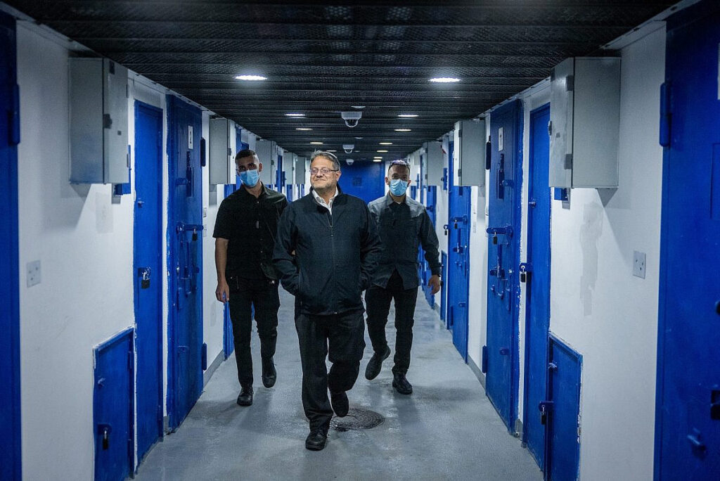 Israel’s National Security Minister Itamar Ben Gvir visits a prison in central Israel, where suspected Hamas and Hezbollah militants are held, 8 Jan 2025. (Chaim Goldberg/Flash90)