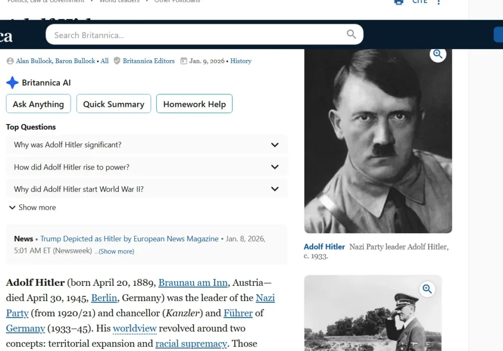 The article instead relies on interpretive leaps from: Trump’s transactional foreign policy and Trump’s self‑perception as a “strong leader”, to Hitler’s racialised ideology and totalitarian philosophy.
