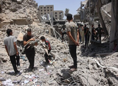 Gazan doctors graduate in front of an Al-Shifa Medical Complex building destroyed by Israeli bombing. Photo credit: Al Jazeera