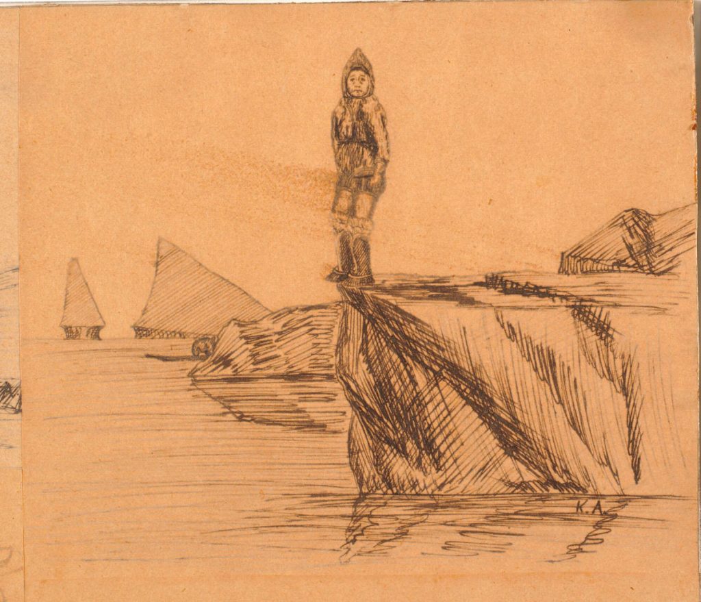 Kaarale Andreassen (Kalaallit Nunaat), Kvinde på en klippe (Woman on a Cliff), n.d.