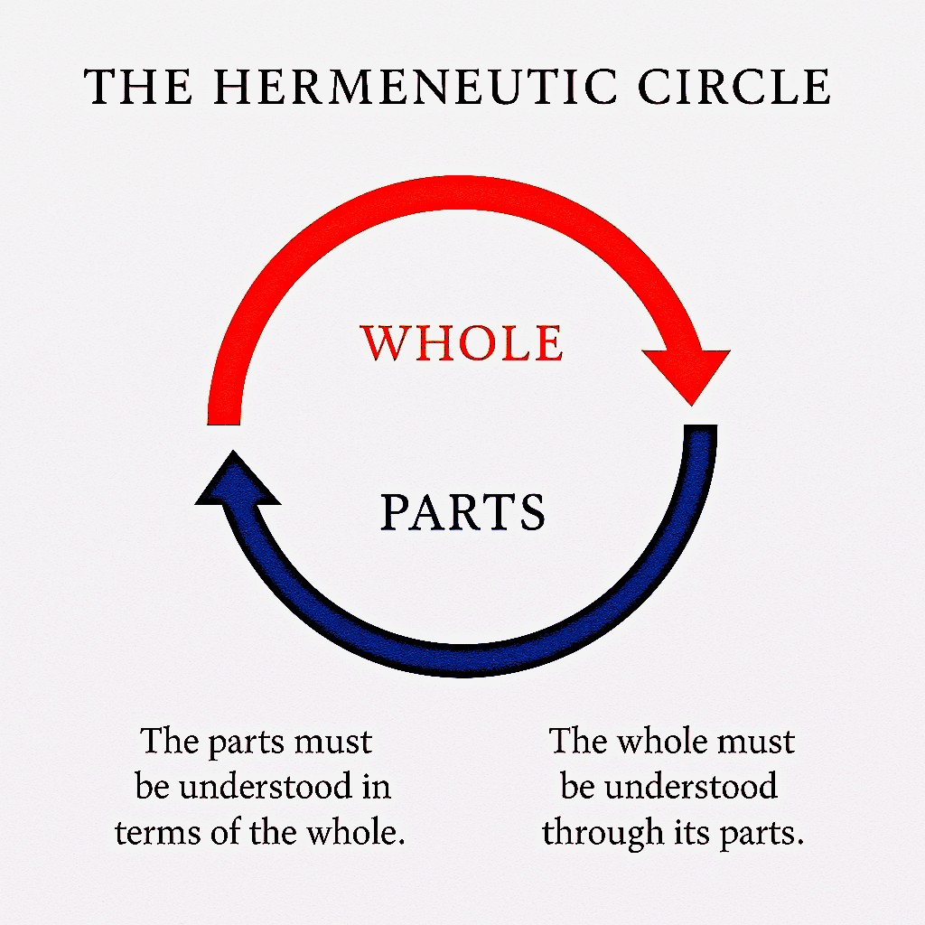 - The Hermeneutic Circle: He formalized the idea that understanding a text involves a circular movement between its parts and the whole. You understand the whole from the parts, and the parts from the whole.