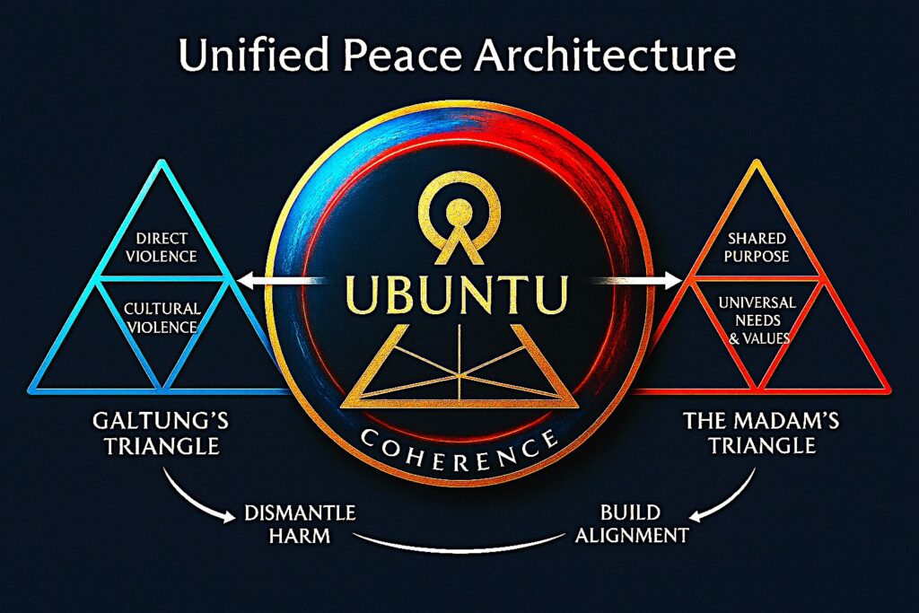 - Unifies diagnostic rigor (Galtung)with design praxis (Madam) under Ubuntu’s meta‑epistemology.
