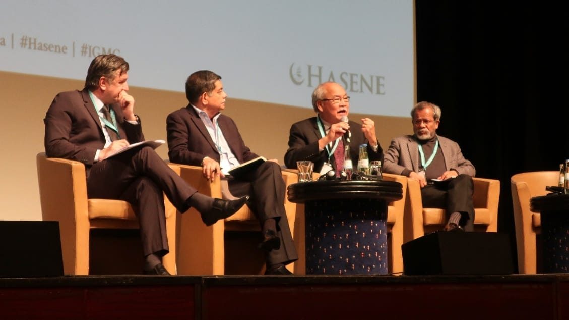 Harn Yawnghwe, speaking in support of Myanmar’s persecuted Rohingya, an International Conference hosted by Hasene International, Cologne, Germany, 2 May 2018 (photo by Zarni)