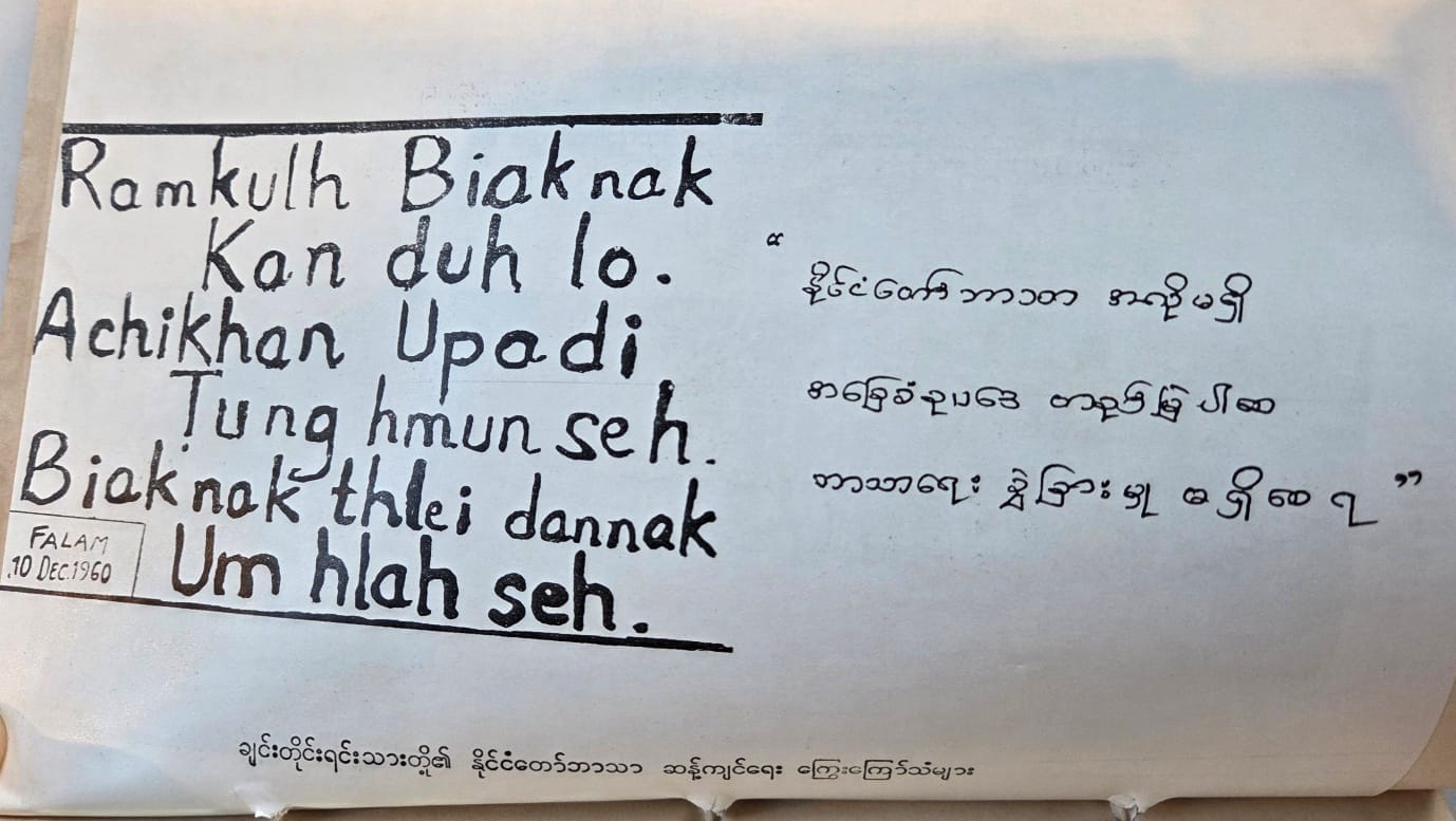 “We want no state religion. Long Live the Constitution of the Union of Burma. No religious discrimination.” are Chin People’s anti-state region slogans, Falam City, Chin State, 10 Dec. 1960.