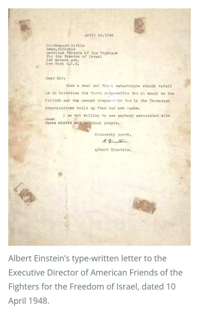 ) 3. Hannah Arendt. She co-authored the open letter to the New York Times cited above, also signed by Einstein, which described the Israeli political party of Herut as closely akin to Nazism. https://marxists.org/reference/archive/einstein/1948/12/02.htm