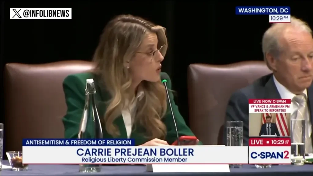 “I want to be clear on what the definition of antisemitism is. If I don’t support the political state of Israel, am I an antisemite, yes or no?,” asked Carrie Prejean Boller, a member of the White House Religious Liberty.
