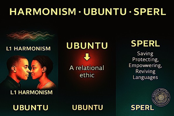 Language equity is not a cultural luxury, it is a peace, development, and identity imperative.  The appreciation of this message is the basis for intercultural peace and harmony. Conceptual pathway illustrating how mother‑tongue (L1) harmonisation enables Ubuntu relational ethics, activates SPERL (Saving, Protecting, Empowering, Reviving Languages), and culminates in a coherent Peace Architecture.