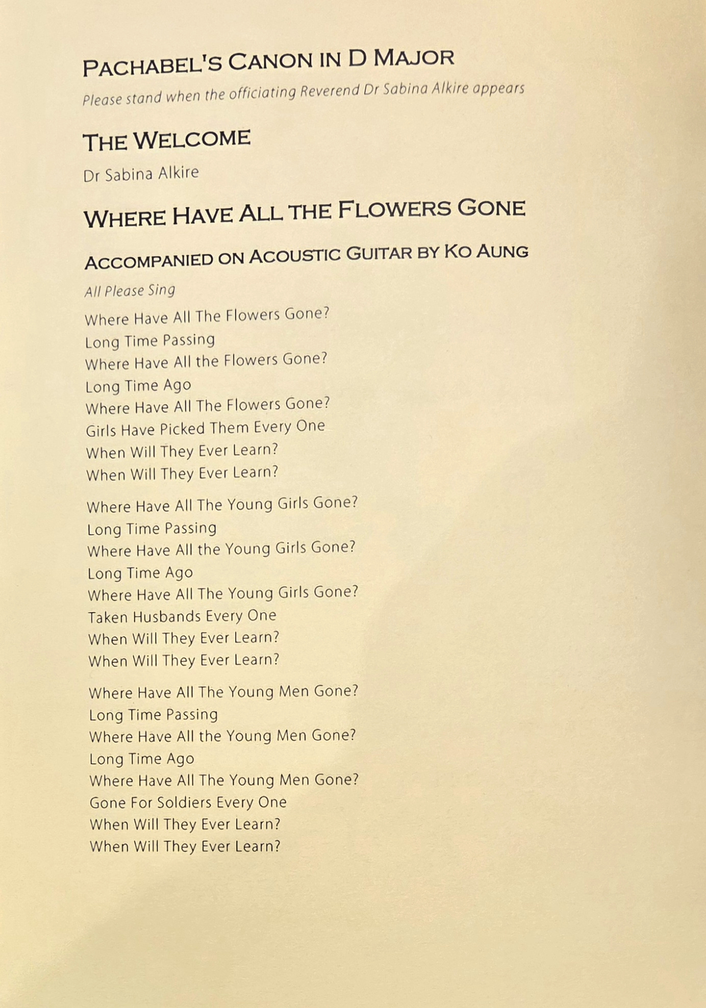 26 Feb 2026 – On 17 January 2009, my then girlfriend and I got married at a church in East Oxford. As staunchly anti-imperialist and proudly anti-war, we decided to start our wedding program with Pete Seeger’s classic Where Have All the Flowers Gone?