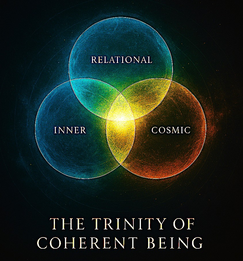 The triangle served us as a map, clear, elegant, and scalable. But maps do not walk. Part 3 asks for the walker: the human being capable of living the map into the world. To do so, the author has formalized the Trinity of Coherent Being: