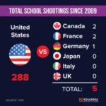 26 May 2022 – A shocking number of U.S. mass shootings take place in schools. According to the U.S. Naval Postgraduate School, there have been 2,054 school shootings in the United States since 1970, with 681 deaths. Canada has had a total of eight school shootings in about the same time frame, from 1975, with a total of 31 victims killed.